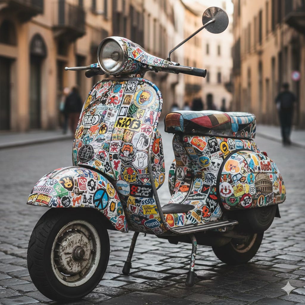 A 18 anni ero molto felice della maggiore età acquisita e di poter guidare l’automobile, eppure invidiavo mio fratello con il vespino ricoperto di adesivi a 14 anni, libero di scorrazzare per le strade, con meno anni di me e la vita in mano.